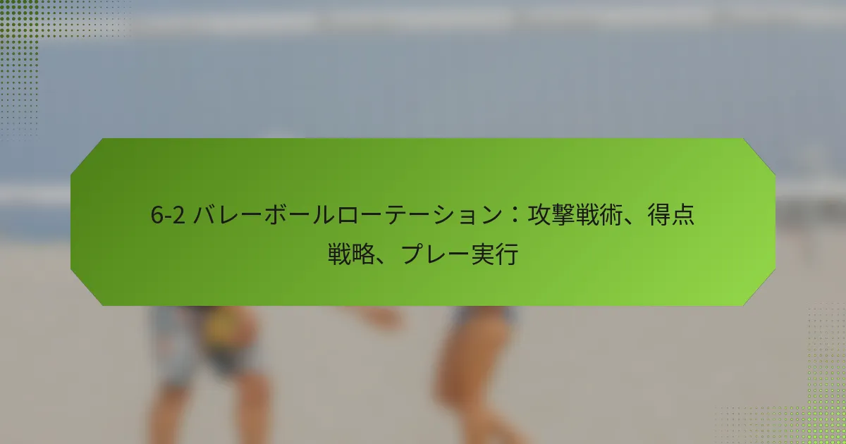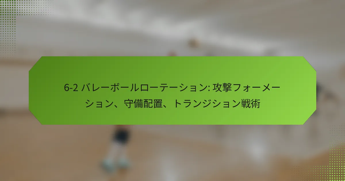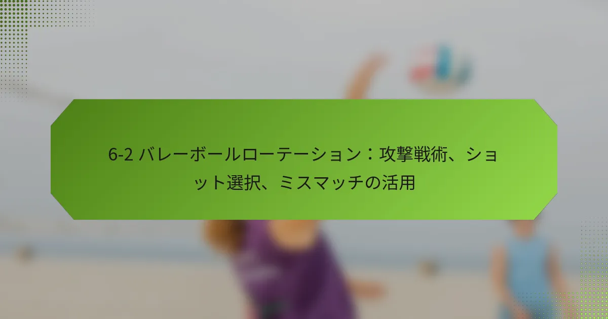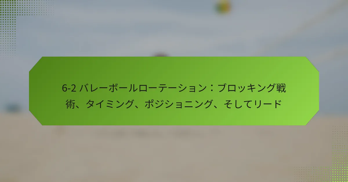 06/02/20266-2バレーボールシステムにおいて、ミドルブロッカーは防御と攻撃の戦略の両方において不可欠です。相手のヒッターを読み取り、攻撃のタイミングを計り、カバーを提供する能力は、チームのパフォーマンスに大きな影響を与えます。これらのスキルを磨くことで、ミドルブロッカーはコート上での効果を高め、チーム全体の成功に貢献できます。 6-2バレーボールシステムにおけるミドルブロッカーの主な責任は何ですか? 6-2バレーボールシステムにおけるミドルブロッカーは、防御と攻撃の両方で重要な役割を果たします。彼らの主な責任には、相手のヒッターを読み取り、攻撃のタイミングを計り、チームメイトのためにカバーを提供することが含まれます。これらの役割を理解することで、チームのダイナミクスとコート上での全体的なパフォーマンスが向上します。 相手の攻撃時の防御的役割 相手の攻撃時、ミドルブロッカーはヒッターのアプローチとポジショニングを読み取ることに集中しなければなりません。これには、攻撃の種類(ラインショット、クロスコートヒット、またはティップ)を予測し、それに応じてブロックを調整することが含まれます。効果的なブロッキングには迅速な反応とヒッターの意図を測る能力が必要です。 主な防御的責任には以下が含まれます: ブロックカバーを最大化するためにヒッターの前にポジショニングすること。 適切な防御の整列を確保するためにチームメイトとコミュニケーションを取ること。 ティップやオフスピードショットをカバーするために迅速に移行すること。 これらの防御的役割をマスターすることで、ミドルブロッカーは相手からの成功した攻撃の数を大幅に減少させることができます。 攻撃のサポートと移行戦略 ミドルブロッカーは、特に防御から攻撃への移行時に攻撃戦略において重要な役割を果たします。ボールがフリーのときに迅速なセットや攻撃を提供できるように準備しておく必要があり、チームが勢いを維持できるようにします。これには、セッターとのタイミングとポジショニングに関する良好な理解が必要です。 効果的な攻撃サポートには以下が含まれます: セッターからの高いセットを攻撃するためのジャンプのタイミング。 最適なヒッティングアングルのために自分の位置を調整するための迅速なフットワークの使用。 効果的な攻撃のためにディフェンスの隙間を見つけるための読み取り。 これらの戦略を実行することで、ミドルブロッカーはチームの攻撃能力を高め、得点機会を創出できます。 セッターやチームメイトとのコミュニケーション コミュニケーションは、ミドルブロッカーがセッターや他のチームメイトと同期するために不可欠です。明確な口頭の合図は、プレーや防御戦略に関して全員が同じ理解を持つことを助けます。この調整は、セッターの位置が頻繁に変わる6-2システムでは特に重要です。 効果的なコミュニケーション戦略には以下が含まれます: サーブ前にプレーや合図を呼びかけること。 プレー中の防御フォーメーションに関するフィードバックを提供すること。 相手のセットアップに基づいてチームメイトにポジションを調整するよう促すこと。 強力なコミュニケーションはチームワークを促進し、コート上でのパフォーマンス向上につながります。 コート上でのポジショニング 適切なポジショニングは、ミドルブロッカーが役割を効果的に実行するために重要です。彼らはネットやセッター、相手のヒッターに対する自分の位置を意識する必要があります。この意識により、迅速に反応し、プレー中に必要な調整を行うことができます。 主なポジショニングのヒントには以下が含まれます: ブロックの可能性を最大化するためにネットの近くに留まること。 セッターの位置に基づいて横の動きを調整すること。 より良いバランスと敏捷性のために重心を低く保つこと。 コート上でのポジショニングをマスターすることで、ミドルブロッカーは防御的および攻撃的なシナリオの両方での効果を高めることができます。 6-2フォーメーションのダイナミクスを理解する 6-2バレーボールシステムでは、2人のセッターが前列に回り込むことで、より多くの攻撃オプションが可能になります。ミドルブロッカーは、このフォーメーションが自分の責任にどのように影響するか、特にタイミングとポジショニングに関して理解する必要があります。この知識は、プレーを予測し、それに応じて反応するのに役立ちます。 考慮すべき主なダイナミクスには以下が含まれます: セッターが前列にいるときの迅速な攻撃を認識すること。 セッターの位置に基づいてブロッキング戦略を調整すること。 両方のセッターと協力して攻撃プレーを最適化すること。 6-2フォーメーションのダイナミクスを把握することで、ミドルブロッカーはチームの成功に大きく貢献できます。 ミドルブロッカーはどのようにして相手の