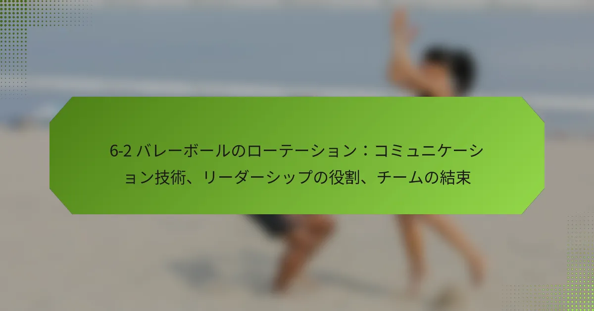 6-2バレーボールローテーションにおける効果的なコミュニケーションは、チームの成功に不可欠であり、選手が戦略や役割に整合していることを保証します。明確な口頭および非言語的なやり取りは、調整を維持し、チームメイト間の信頼を築くのに役立ち、最終的にはコート上でのパフォーマンスを向上させます。