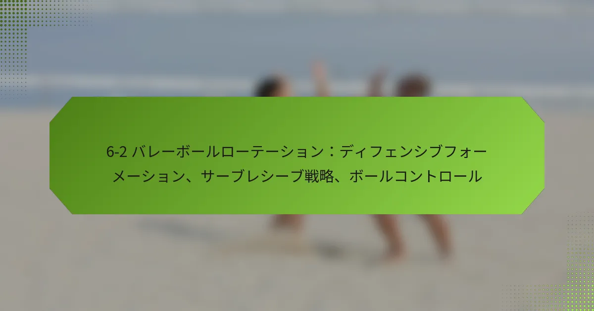 6-2バレーボールローテーションにおける効果的なサーブレシーブ戦略は、選手のポジショニング、コミュニケーション、さまざまなサーブタイプへの適応に焦点を当てています。これらの要素をマスターすることで、チームはボールコントロールを向上させ、成功する攻撃プレーを設定できます。