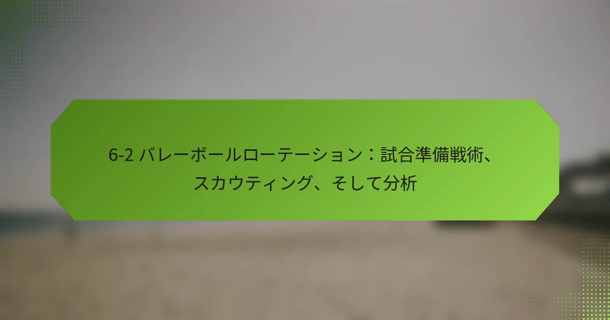 6-2ローテーションを使用した試合準備には、戦略的計画、効果的なドリル、チームダイナミクスの明確な理解が含まれます。このローテーションはバランスの取れた攻撃とディフェンスを可能にし、選手の強みを最大化しながらコート上での効果的なコミュニケーションを確保します。