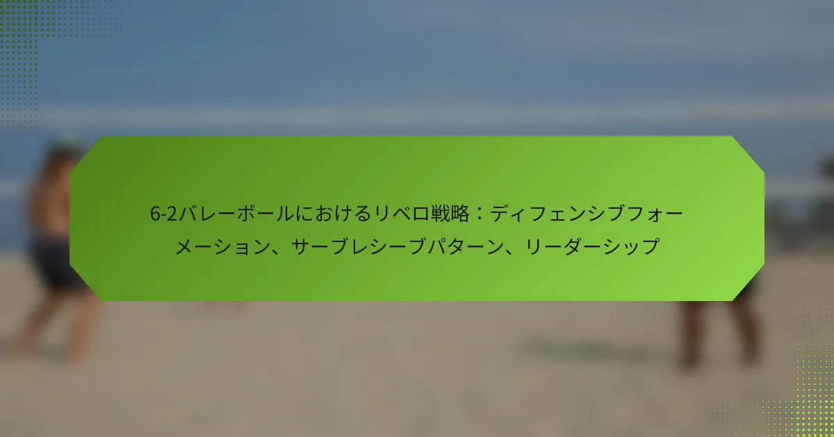 6-2バレーボールシステムにおけるリベロの高度な戦術は、防御フォーメーションの最適化、サーブレシーブパターンの改善、コート上での効果的なリーダーシップの育成に焦点を当てています。これらの戦略を採用することで、リベロはパフォーマンスを大幅に向上させ、チームの全体的な成功に貢献することができます。